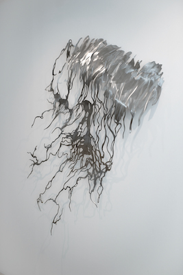 Les dessins sont vectorisés et découpés dans des plaques fines, du bois pour les premiers essais, puis du métal, inox pour les plus grandes ou mailleshort pour les petites dimensions. Ils sont parfois superposés aux photographies d'après lesquelles les dessins ont été faits. |
